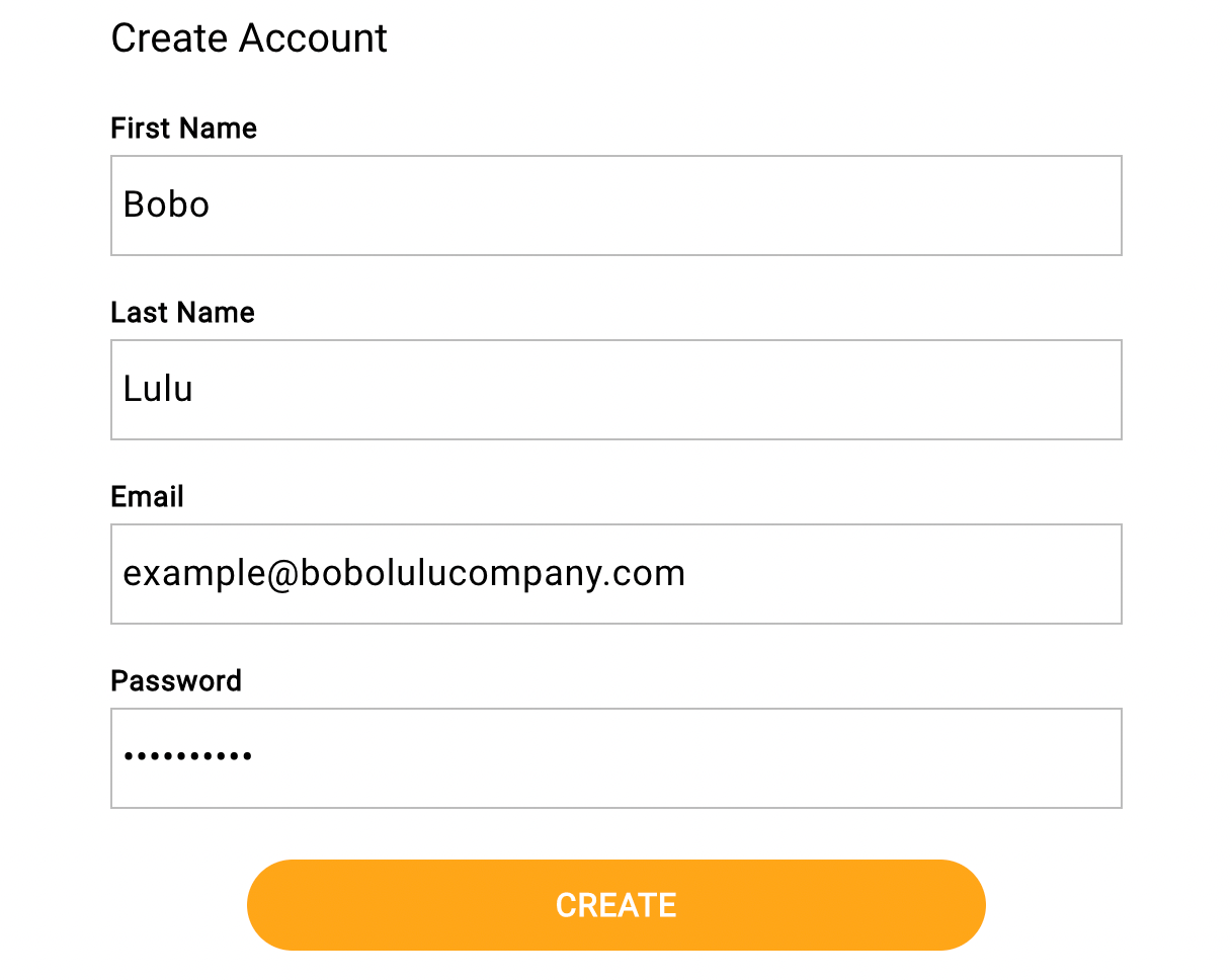 2. Fill out the “Create Account” screen with your first name, last name, and the email address associated with your subscription order. Create a password for your account and then click the “CREATE” button.