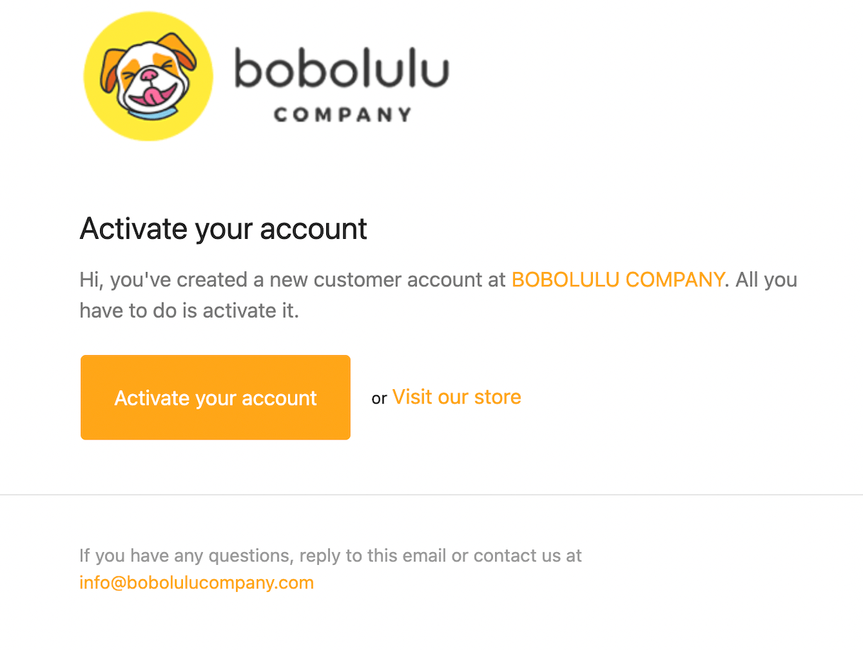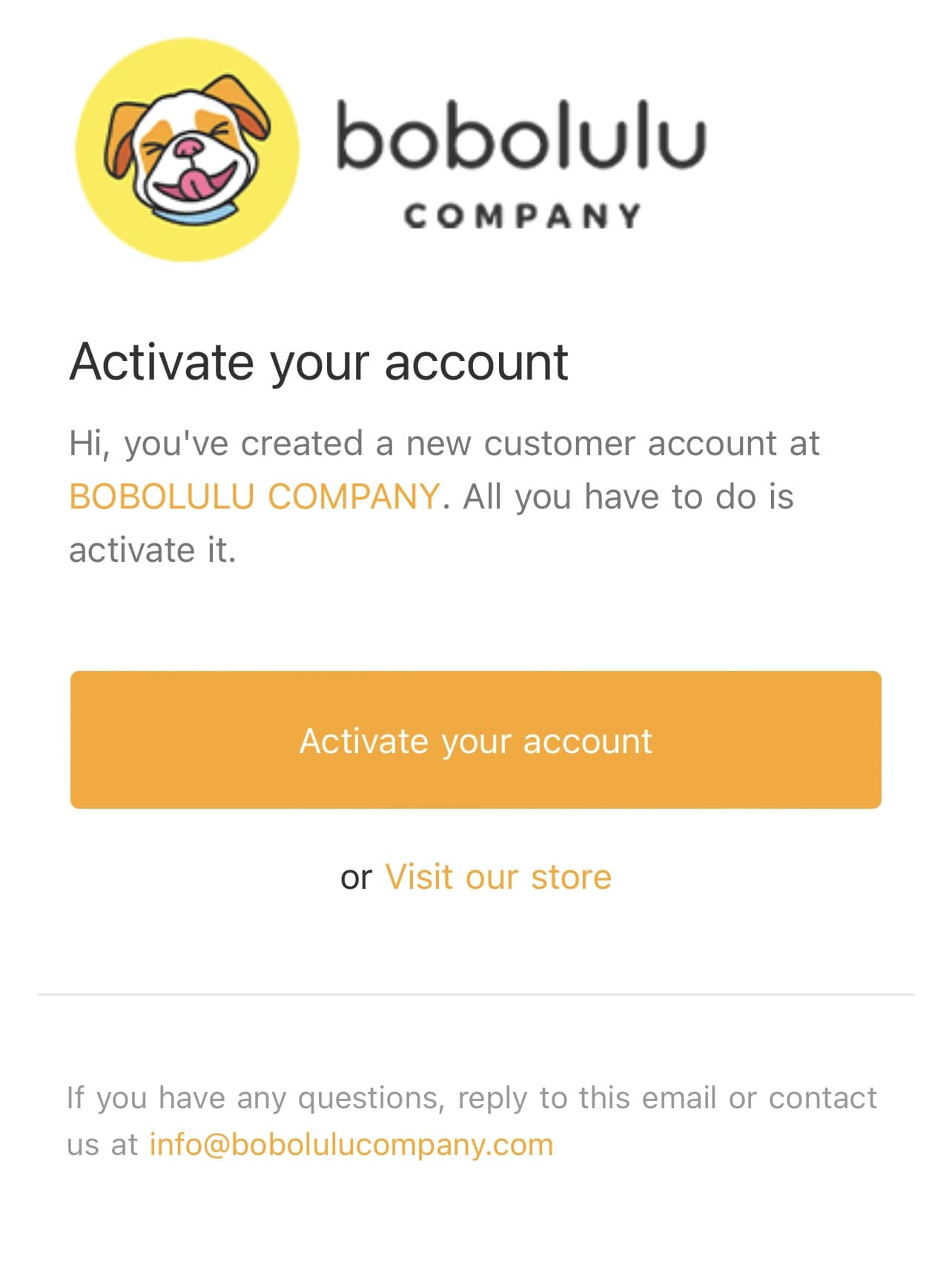 4. Look for an email titled “Customer account activation” from info@bobolulucompany.com. Click the “Activate your account” button, and you will be directed to the “My Account” page.